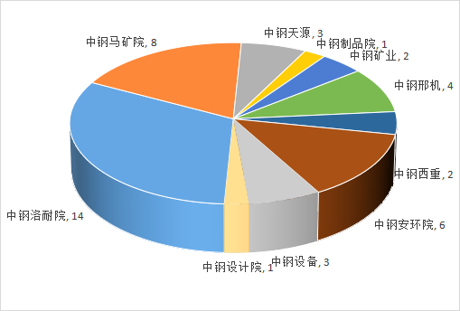截止2021年末,中钢集团所属企业累计登记入库科技成果44项,其中中钢洛耐院14项、中钢矿院8项,占据2021年集团新增科技成果数量的50%(如图1所示)。
