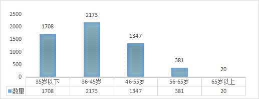在所登记的447项科技成果中,按科技成果完成人员年龄统计:35岁以下1708人,36-45岁2173人,46-55岁1347人,56-65岁381人,65岁以上20人。从年龄结构分布看,55岁以下的科研人员为5228人次,占全部登记成果完成人总数的92.88%。