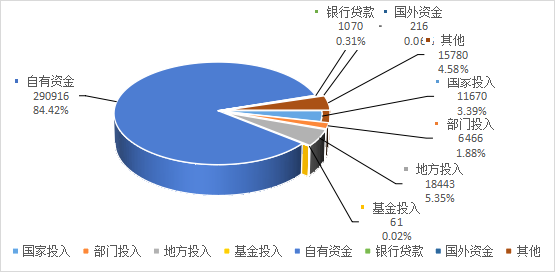 在本年登记的科技成果中,经费实际投入额共计344622万元,其中:国家投入11670万元,占3.39%;部门投入6466万元,占1.88%;地方投入18443万元,占5.35%;基金投入61万元,占0.02%;自有资金290916万元,占84.42%;银行贷款1070万元,占0.31%;国外资金216万元,占0.06%;其他15780万元,占4.58%。其中自有资金在总资金投入中占有较大的比重。
