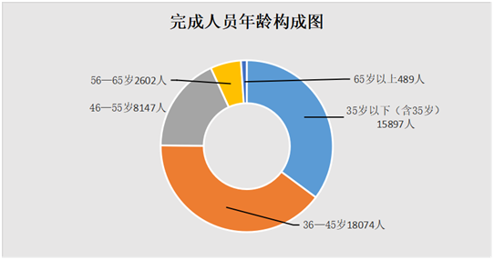 3.中青年科研人员已经成为科技创新的骨干力量。在登记的45209人次科技成果完成人员中,35岁以下(含35岁)15897人次,占总数的35.1%;36~45岁的18074人次,占总数的40.0%,两项合计75.1%。青年人员已成为我区科技创新的主要力量。