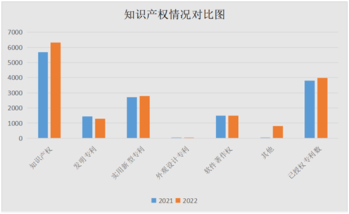2022年登记的科技成果共产生知识产权6326件,比上年增加644件,增加11.3%,制订标准116件。其中发明专利1287件,减少154件;实用新型2793件,增加91件;外观设计5件,增加1件;软件著作权1481件,减少9件;其他知识产权(植物新品种登记)813件。已授权专利3979件,占62.9;比2021年度3794件增加185件,增长4.9%。(见图9)