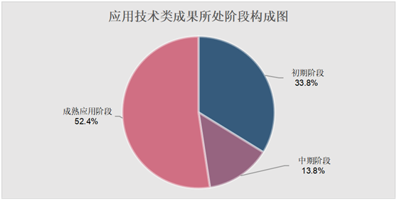 成果所处阶段:2022年广西登记的6218项应用技术成果中,处于成熟应用阶段的有3258项,占52.4%;处于中期阶段的有859项,占13.8%;处于实验室、小试等初期阶段的有2101项,占33.8%。(见图10)