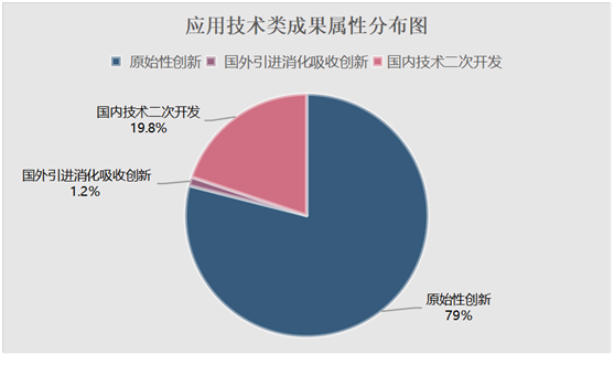 成果属性:2022年广西登记的6218项应用技术成果中,原始性创新的有4910项,占79.0%;国外引进消化吸收创新的有73项,占1.2%;国内技术二次开发的有1235项,占19.8%。(见图11)