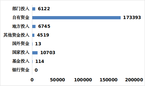 2024年度登记的科技成果中,经费实际投入额为20.16亿元,较上年增长3.5倍。其中,部门投入、自有资金分别为0.61亿元、17.34亿元,均较上年增长明显,分别增长8.3倍、7.5倍;地方投入、其他资金投入分别为6745万元、4519万元,均较上年呈现小幅增长,分别增长5.1%、4.7%;国外资金13万元,改变连续2年持续为零的情况。国家投入、基金投入分别为1.07亿元、114万元,均较上年有所下滑,分别下降11.9%、68.5%。(见图4)