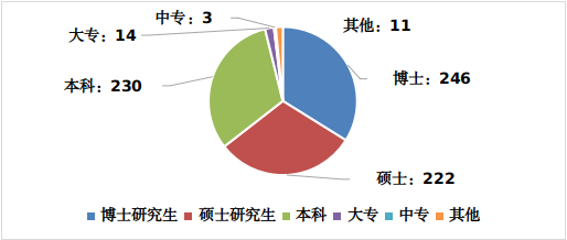 成果完成人学历以研究生为主,占总人次的比重为64.5%,其中博士研究生占研究生总数的52.6%;年龄以36-45岁为主,占总人次的比重为44.9%,较上年提高3.85个百分点;职称以副高级以上为主,占总人次的比重为66.8%,其中院士2人次。(见图5、6、7)