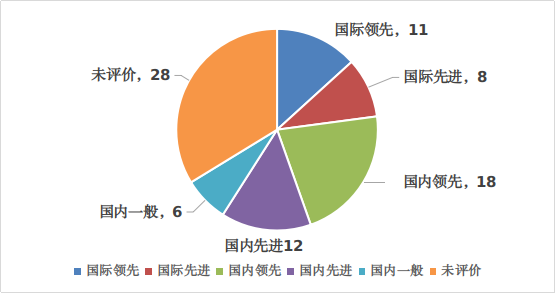 登记的83项应用技术成果中,属于原始性创新的项目55项,国外引进消化吸收创新的项目5项,国内技术二次开发的项目23项,分别占应用技术成果的66.3%、6.0%和27.7%。共有55项成果进行了成果水平评价,占应用技术成果的66.3%。其中,国际领先11项,较上年增长37.5%;国际先进8项,较上年增长7倍;国内领先18项,较上年增长5.9%;国内先进12项,较上年增长1倍;国内一般6项,占应用技术成果的7.2%。(见图9)